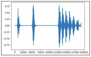 We formatted the data by translating the audio waves into spectrograms and then inputting the spectrogram images into the CNN model. Below is an example audio wave of a dog barking, and its accompanying spectrogram: