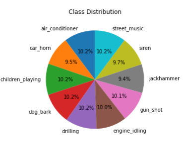 There were 10 classes within this audio dataset. The distribution can be seen below: