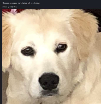 Below is a screenshot of the network correctly classifying my team member's dog:
